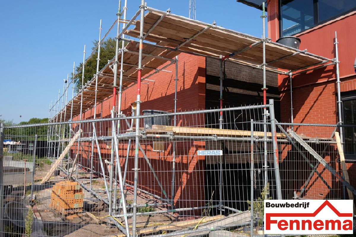 De bouw van Dojo Veendam nadert de afronding, de laatste hand wordt gelegd aan het voegwerk en dan worden de steigers verwijderd.